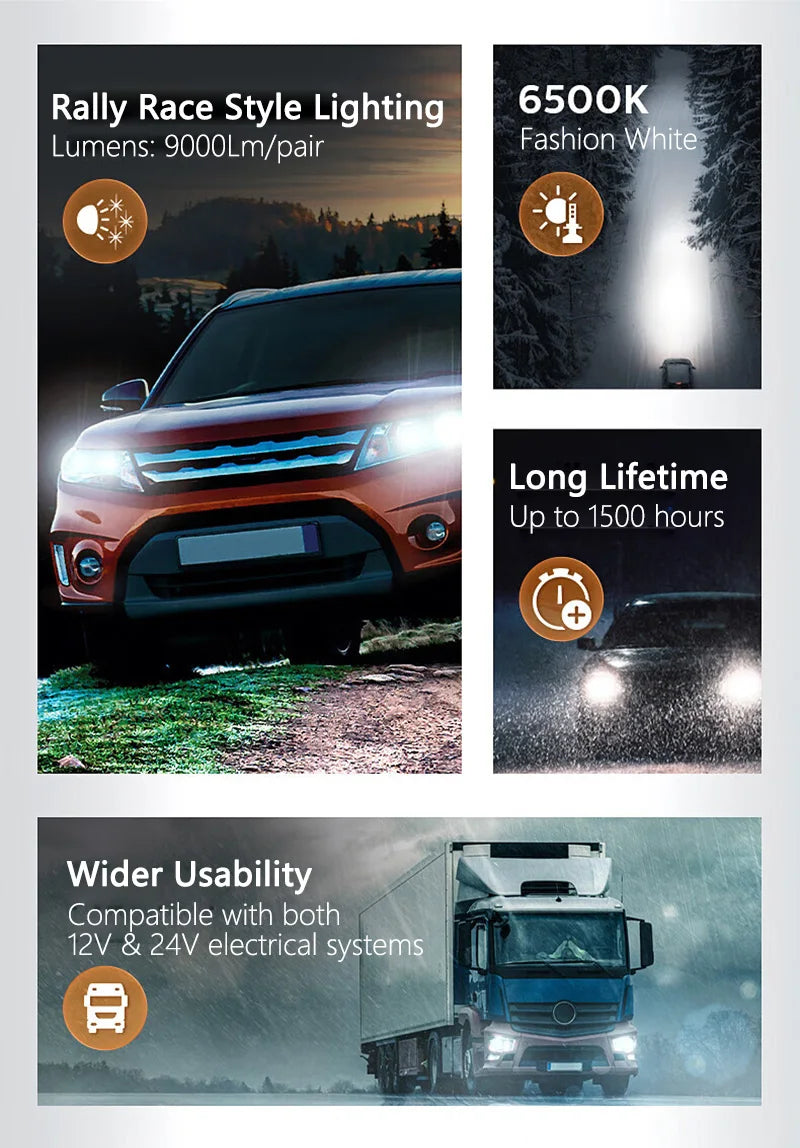 Model: H4 H7 H11 HB3 HB4 HIR2 9005 9006 9012